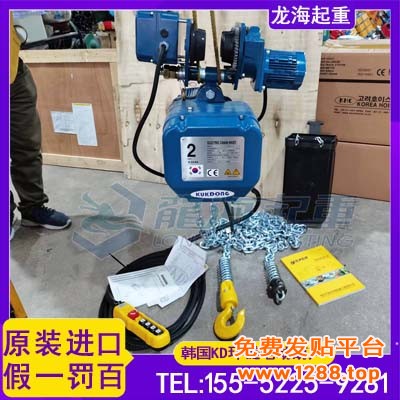 【产品质保】韩国KD环链电动葫芦为韩国原装进口产品,保质一年,我公司郑重承诺:厂家货源,凡在我司购买该品牌产品如有仿货、假货、拆件货均以货值百倍赔偿!